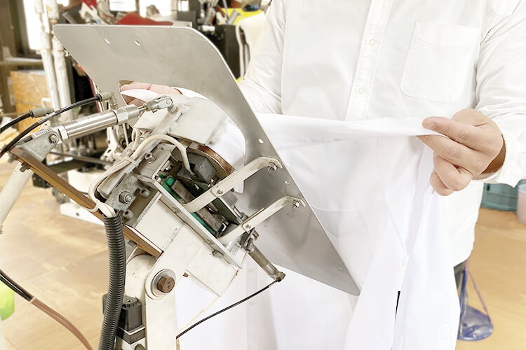 ネックプレス 専用のプレス機で襟周りが美しいカーブに